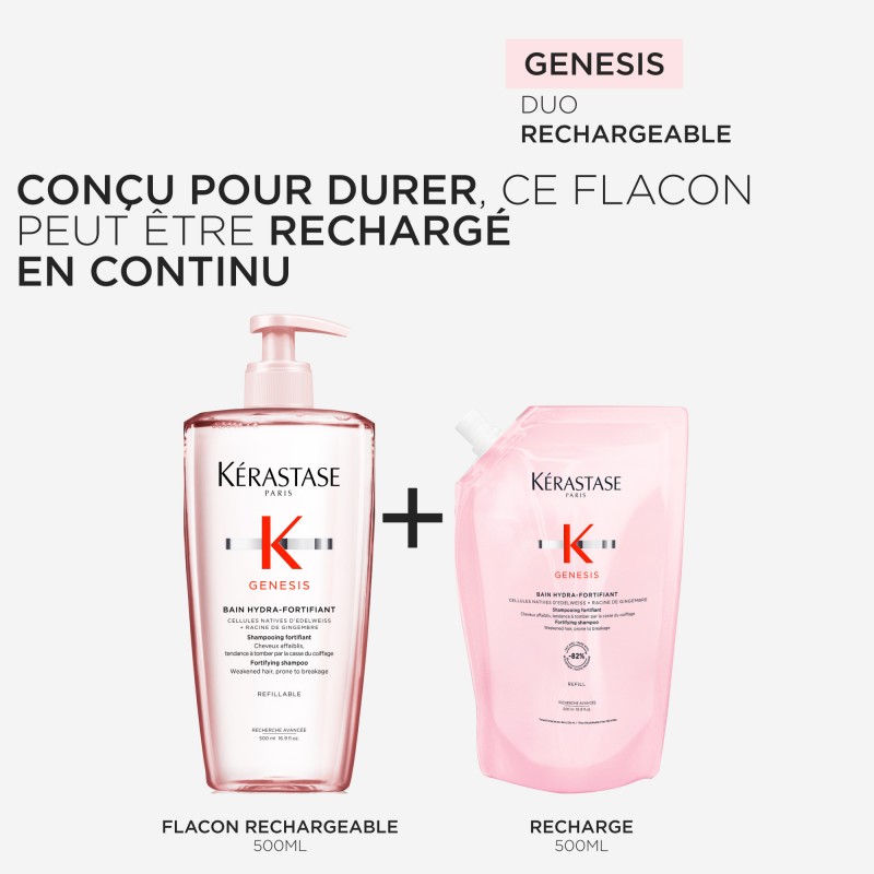 Bain Hydra-Fortifiant rechargeable pour cheveux affaiblis sujets à la casse
