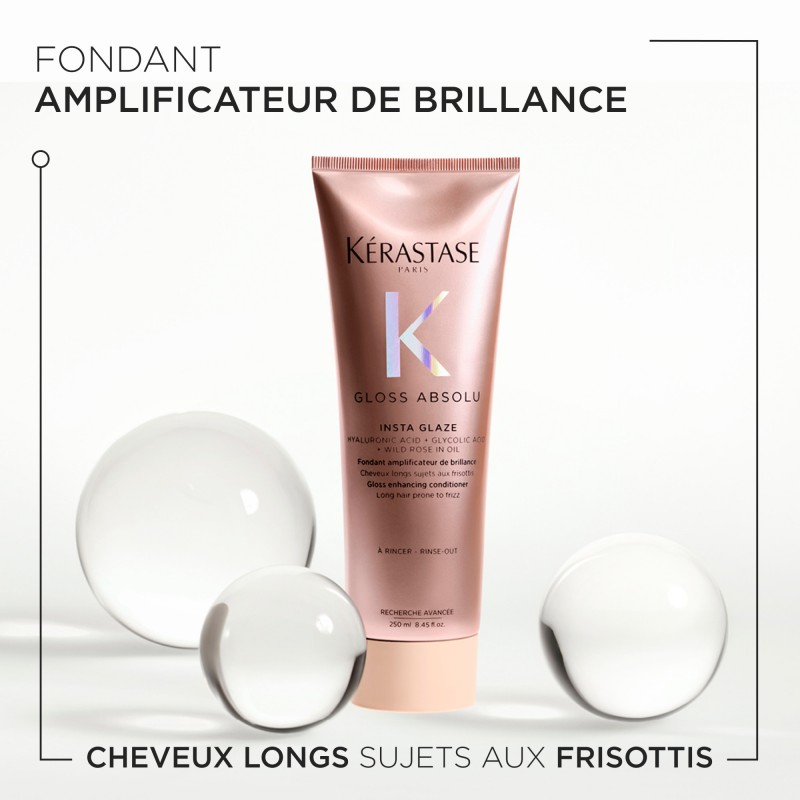 Pour maximiser les résultats, combinez avec le reste de la gamme Gloss Absolu. Commencez avec le Bain Hydra-Glaze pour une brillance saine & durable. Complétez avec le soin Fondant Insta Glaze. Protégez vos cheveux de la chaleur, des frisottis et de l'humidité tout en apportant une douceur absolue avec le spray Anti-Frizz Glaze Milk. Enfin, coiffez-vous avec l'huile cheveux parfumée Glaze Drops pour une touche finale de brillance.