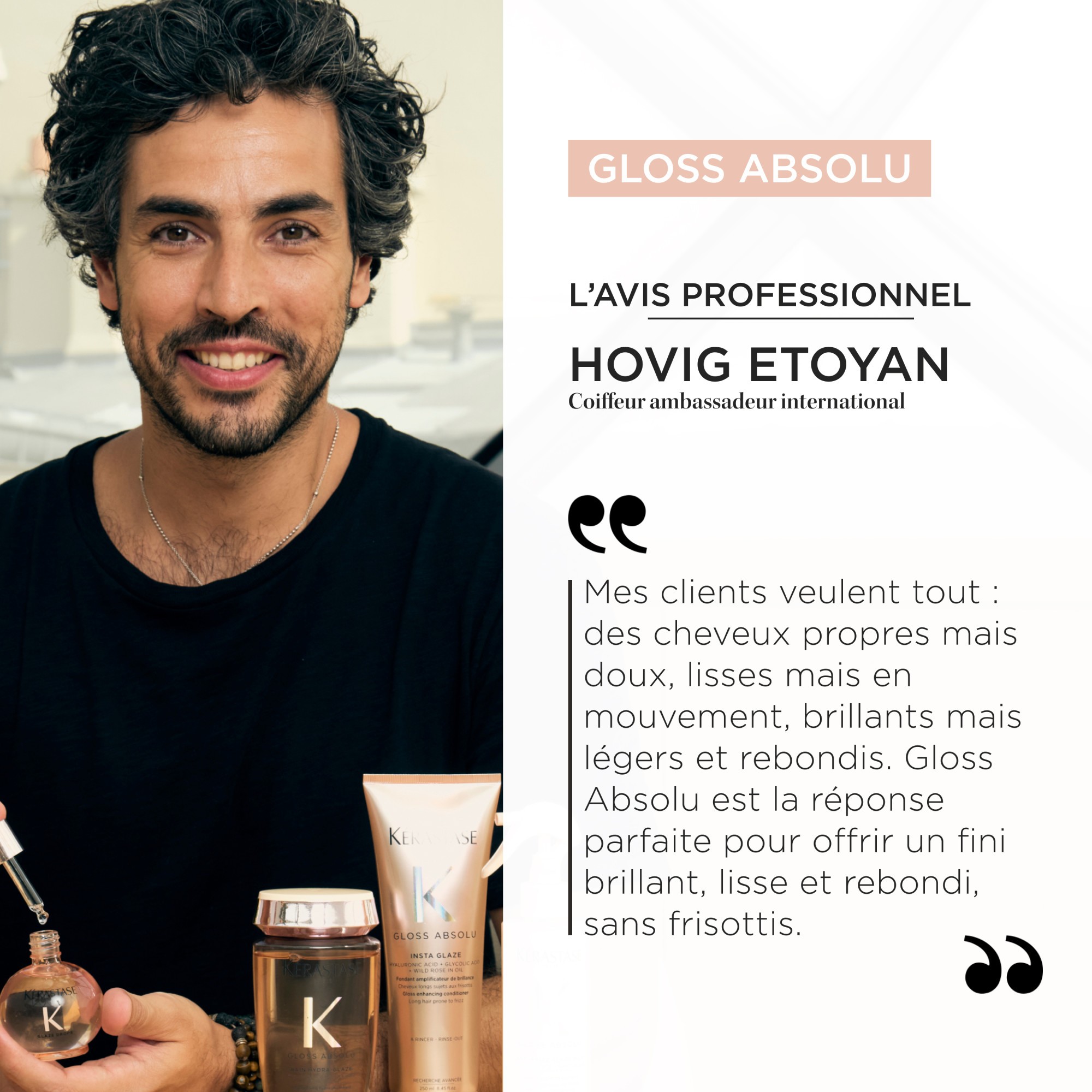 Pour maximiser les résultats, combinez avec le reste de la gamme Gloss Absolu. Commencez avec le Bain Hydra-Glaze pour une brillance saine & durable. Complétez avec le soin Fondant Insta Glaze. Protégez vos cheveux de la chaleur, des frisottis et de l'humidité tout en apportant une douceur absolue avec le spray Anti-Frizz Glaze Milk. Enfin, coiffez-vous avec l'huile cheveux parfumée Glaze Drops pour une touche finale de brillance.