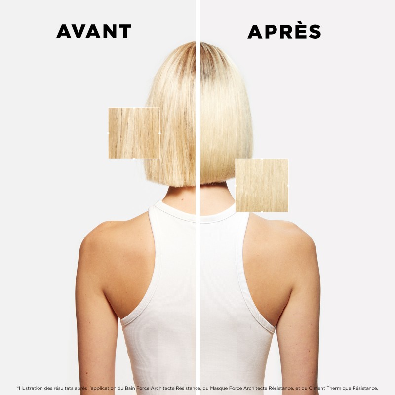 Le Ciment Thermique s'intègre parfaitement à votre routine de soins capillaires. Après avoir lavé vos cheveux, appliquez simplement le lait sur les longueurs avant de procéder à votre coiffage habituel. La formule légère est rapidement absorbée, ne laissant aucun résidu gras, et prépare les cheveux pour un coiffage optimal. Pour une expérience véritablement transformatrice, pensez à intégrer le Bain et le Masque de la gamme Force Architecte de Kérastase. Ce trio complémentaire agit en synergie pour répondre aux besoins des cheveux fragilisés et abîmés. Le Bain nettoie en douceur tout en renforçant la fibre capillaire, tandis que le Masque offre un soin revitalisant en profondeur.