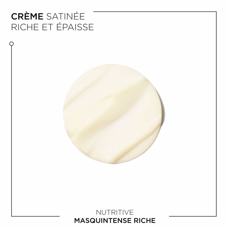 Le Masquintense Riche de Kérastase est un masque haute nutrition, idéal pour les cheveux très secs. Sa formule crème satinée riche et onctueuse renforce et nourrit en profondeur les cheveux très secs moyens à épais. Enrichi en protéines d'origine végétale et en Niacinamide, un actif issu des soins de la peau qui renforce le cheveu, ce masque restaure la barrière protectrice naturelle du cheveu en ciblant les zones en manque de nutrition. En agissant au cœur de la fibre, le masque renforce les cheveux dès la première application (+98%)*. Les cheveux sont instantanément nourris en profondeur (+89%)*. Les cheveux sont plus brillants (+116%)* et plus doux dès la première application. 98% des femmes recommandent leur routine Nutritive pour cheveux très secs**